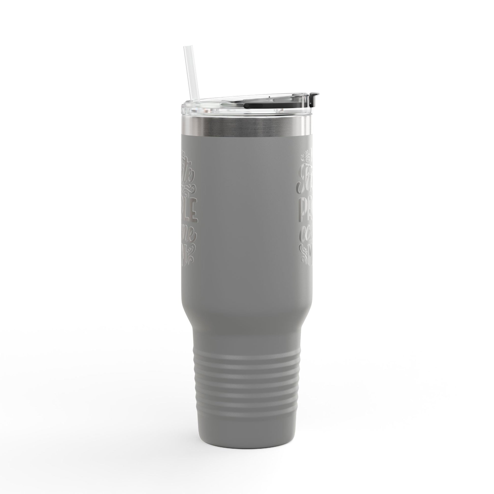 This 40oz insulated travel mug is built for long days, early mornings, and routes that don’t stop for coffee breaks. Thick double-wall stainless steel keeps beverages hot or cold for hours while a leak-resistant push-on lid with a secure latch and included straw lets you sip on the go without worry. An ergonomic handle and large capacity mean fewer refills during road trips, work shifts, or outdoor adventures. The powder-coated finish adds grip and color choice, while UV-DTF printed artwork stays vibrant against the durable surface. Lightweight yet rugged, it’s made from rust-resistant stainless steel and BPA-free components — recommended for hand wash to preserve the finish.